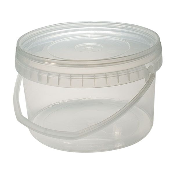 El cubo redondo de plástico polipropileno tiene capacidad para 2.5 litros. Es el envase perfecto para transportar tus alimentos gracias a su cierre hermético con asa incluida y su color blanco translúcido